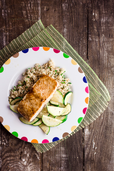 Glazed Salmon with Zucchini and Bulgur Pilaf