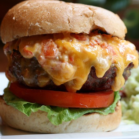 It was amazing and wonderful. I've spent many an hour fondly remembering those burgers. I'm happy to say that I can toss those memories aside and replace them with this. This burger. It is the burger of my youth only better, much better. OMG. Why have I never made pimento cheese before? Why? This is now my cheeseburger. My cheeseburger forever and ever.