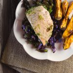 This is so good and so easy! It answers the question of what to serve with baked salmon - cabbage and kale! I rounded out the dinner with some baked sweet potato fries. They roasted in a second sheet pan. So easy!